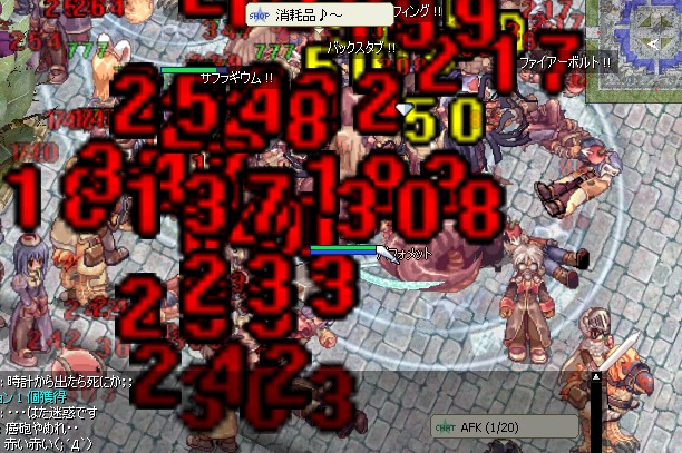 3人PTで一人がDS乱射、私がバックスタブ連射(SPなくなったよ)、もうひとりは傍観という感じだったんですが、それで入った経験値が10000ぐらいとのこと(公平PT)。へぇー、結構与ダメ的にはいい感じに与えてたんじゃないのかねぇ。