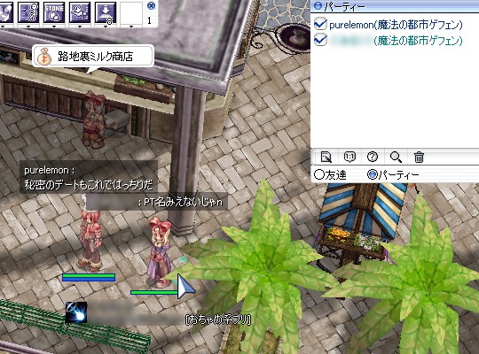 最後のPT名を強制的に変えるって言うのは、なんかDB上のゴミデータを指すことになってしまうので、非常に危険な状態でした。実際に、ゴミデータを指した結果、みためPT名のないPTというのが実験時にできてしまうことを確認しています(危ないので当然解散しましたが)。まぁSSをとっておいたのでご紹介。