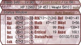 パッと手元のシミュレータで計算させてみた。装備とかでのステ補正を考慮してステ振りを決めるとあとで融通が利かなくなるということを今の騎士のステで学んでるのでJob補正と素のステのみでLv90とLv99をさらっと出してみた(HPとSPは単に1.25倍しただけなのできっと計算ずれてるとおもうんだけど)。