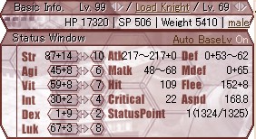 しかもこれ何がいいかって、肩にかけるカードが制限を受けないのでぼろまんととイミューンの使い分けができるわけです。しかも盾も関係ないので両手剣でもいけるし、Gvでタラフロ持ってもOK。いやーこれは器用貧乏型クリ騎士にぴったりですねー。コレ見たらもうアクエンカードへの未練はなくなりました。おとなしくDEX初期値、INT32、STR87(Job補正で+13だよね?)、LUK70、AGIとVIT60で転生ステを調整してみますかね!