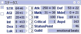 さらにVITとAGIをバランスで振って行くし、村正を使ったときの単発火力よりも手数が多くなることを勘案して1発のダメージを固定値で100引き上げるオーラブレードも削りが必要な場面では重宝しそう(まぁ主にエンペですけど)。まぁスキルにも固定値で100なので、スキルメインだとあんまりオーラブレードいらないねーって気はします。だからこそホントエンペ用っていう意味合いが強いわけで。