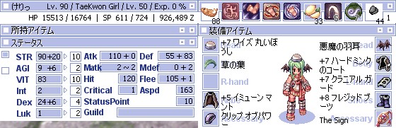 さっと見た感じこんな感じでした。そっかー、プパからペコ鎧に乗り換えなきゃならないのかぁ…。とりあえずまだプパ鎧のままですが、ステと装備とHPSPを公開しておきますね。