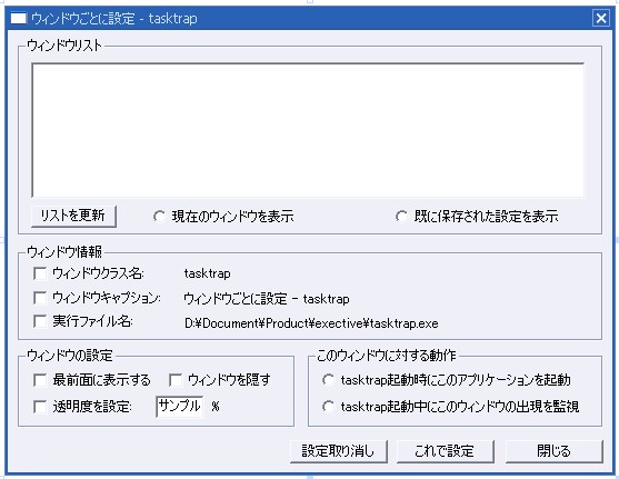 あたりを予定しています。ウィンドウプリセットが目玉機能でして、もうダイアログリソースはv0.29あたりから実行ファイルに入ってるんですが、こんな感じに設定できるようになります。