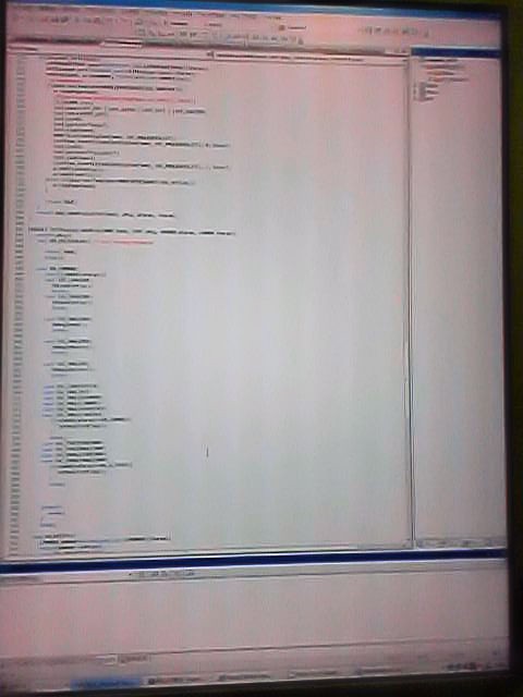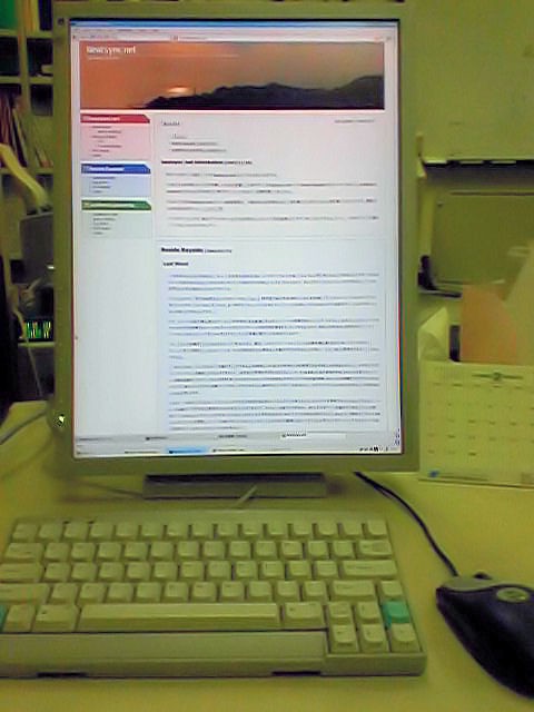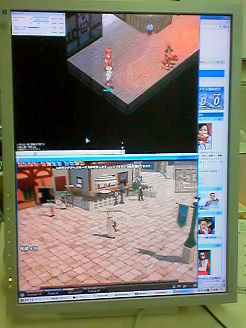 こう落ち込んでもいられないわけで、泣いても笑ってももうちょっとなんですが、東京へ機材を送る関係でオレの使ってた液晶タブレットもその対象になったので、代わりに20インチの液晶ディスプレイを借り上げてきて使うことにしたんです。ちなみに三菱の生産終了モデル(後継商品はまだ売ってるみたい)で、この液晶、1600x1200とかいうすげーでかい解像度なんですが、これなんと縦に回転もできちゃうってことで、縦にまわしてみた。