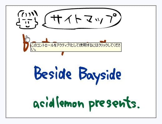 まぁともあれ、その通りにやってみることにしましょう。上の方で読み込まれていたbeatsync.netサイトマップFlashは直接XHTMLにobject要素を書いて読み込んでいました。こんな感じで。