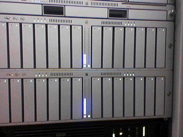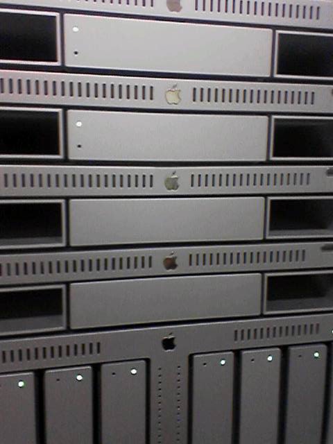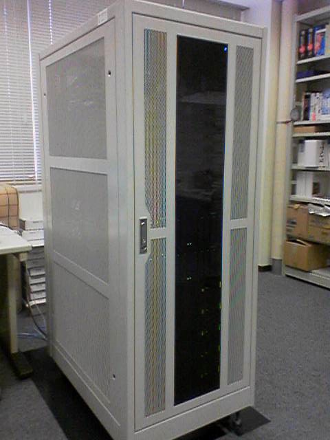 さてそんなわけで、後期の授業のためにそのRAIDサーバにsvnserveを入れなきゃならなくて、サーバ室で作業をするハメになりまして、そういえばオレMacのラックサーバってみたことないよってことで、ケータイでぱしゃぱしゃ撮ってきました。