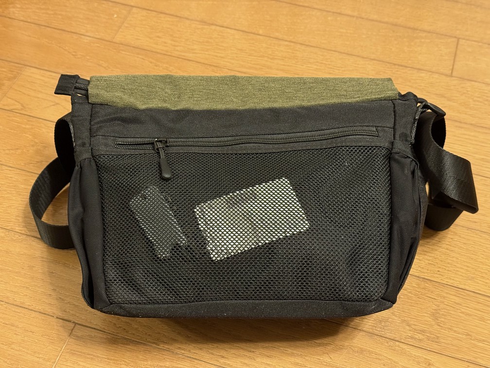 背面がメッシュになってるところとか、サイドにギャザーポケットがあるところとかがだいぶ使いやすくてお気に入りです。車で出かけたときにだいたい駐車券どこのズボンポケットに入れたか忘れる問題があり、基本的に財布と一緒のところに入れてたんですが、このバッグにしてからはメッシュポケットにいれればええやんということで出し入れ楽になりました。